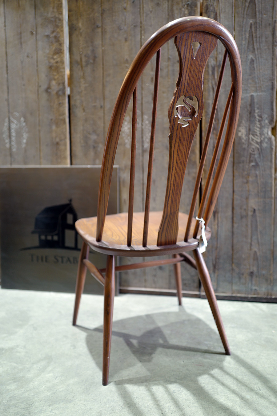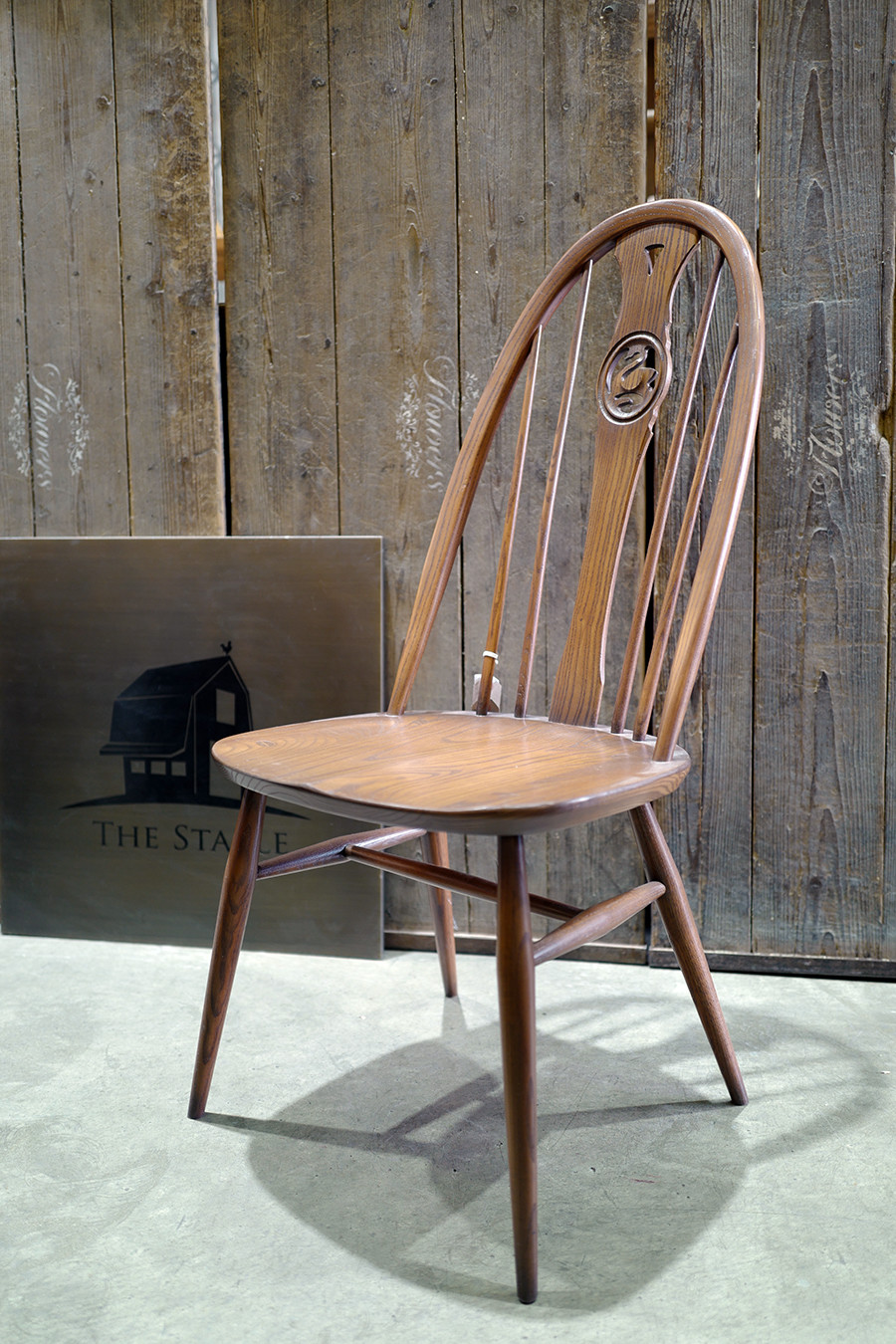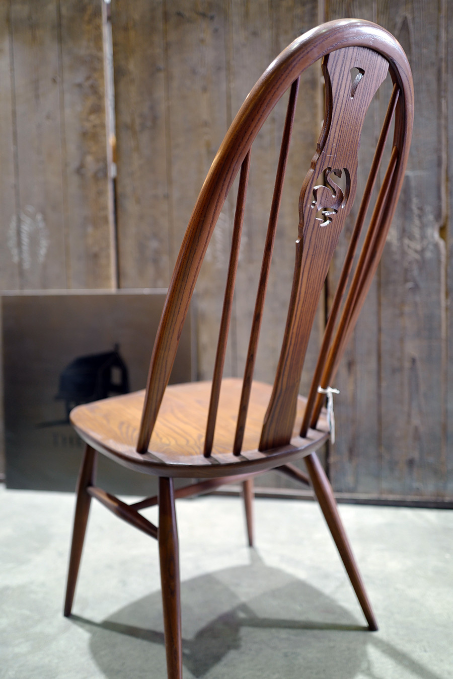 영국 가구 업계의 아이콘, 얼콜(ercol) 사의 스테디셀러 퀘이커 체어의 후속작으로 콜로니얼 제품군에 속하는 체어입니다. 스플랫 부분에 백조가 음각으로 조각되어 있는데, 평면적인 조각이 아니라 앞과 뒷 부분에서 입체적인 차이를 느낄 수 있도록 정성스럽게 조각되어 있습니다. 등받이 부분이 하이백으로 되어 있어 전통적인 윈저 체어의 장점인 편안함이 얼콜에 의해 극대화 되어 있습니다. 시트 부분의 소재는 엘름(elm), 나머지 파츠들은 애쉬(ash), 비치(beech)입니다. 컬러는 골든 던(golden dawn)으로, 콜로니얼 제품군에 공통적으로 적용되는 컬러 중에 하나로 어둡지 않은 갈색톤입니다.