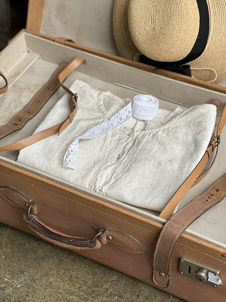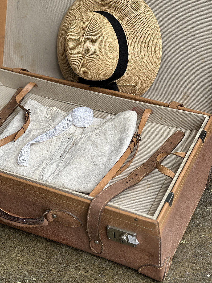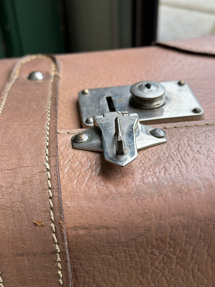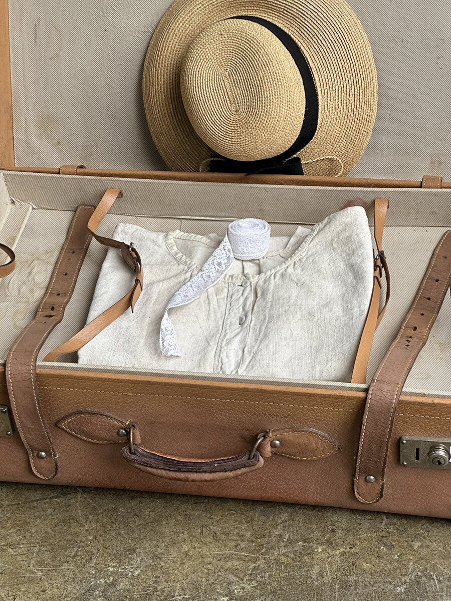 프랑스에서 제작된 여행용 트렁크입니다. 소재는 천연가죽으로 제작 되었으며, 내부는 2단으로 나뉘어 물건들을 크기나 용도에 맞춰 나누어 수납할 수 있게끔 제작되어 있습니다. 다양한 디스플레이 연출에 활용하기 좋은 빈티지 아이템이며, 물론 실사용 용도로도 사용 가능합니다. 다만 트렁크 열쇠는 보전되어 있지 않은 상태입니다. 트렁크 열쇠구멍이 있는 버튼부를 각각 바깥쪽으로 밀면 열리게 되어 있습니다. 가죽끈은 경화된 부분이 없이 상태가 매우 좋은 편입니다.