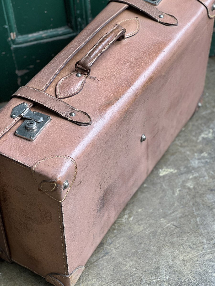 8a-075 Vintage French travel trunk (indian pink)