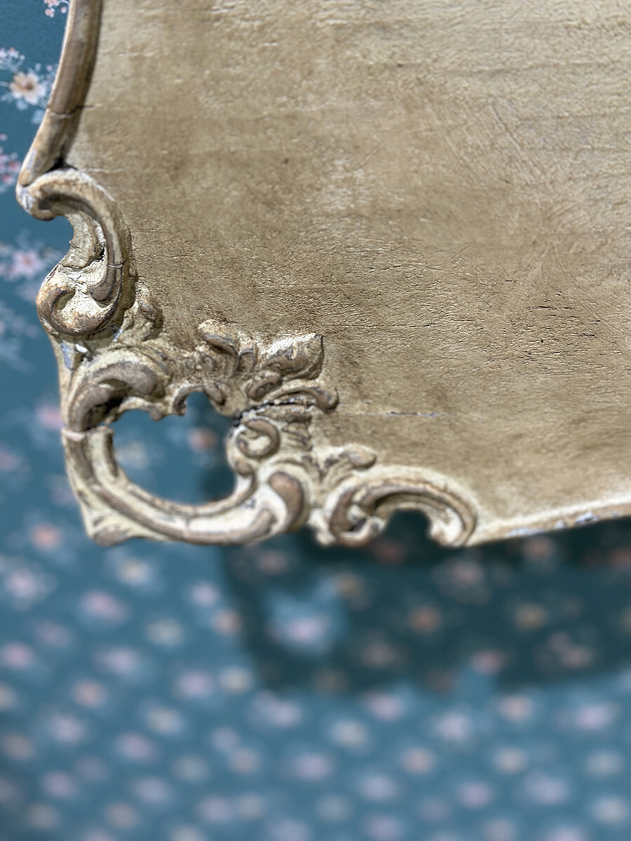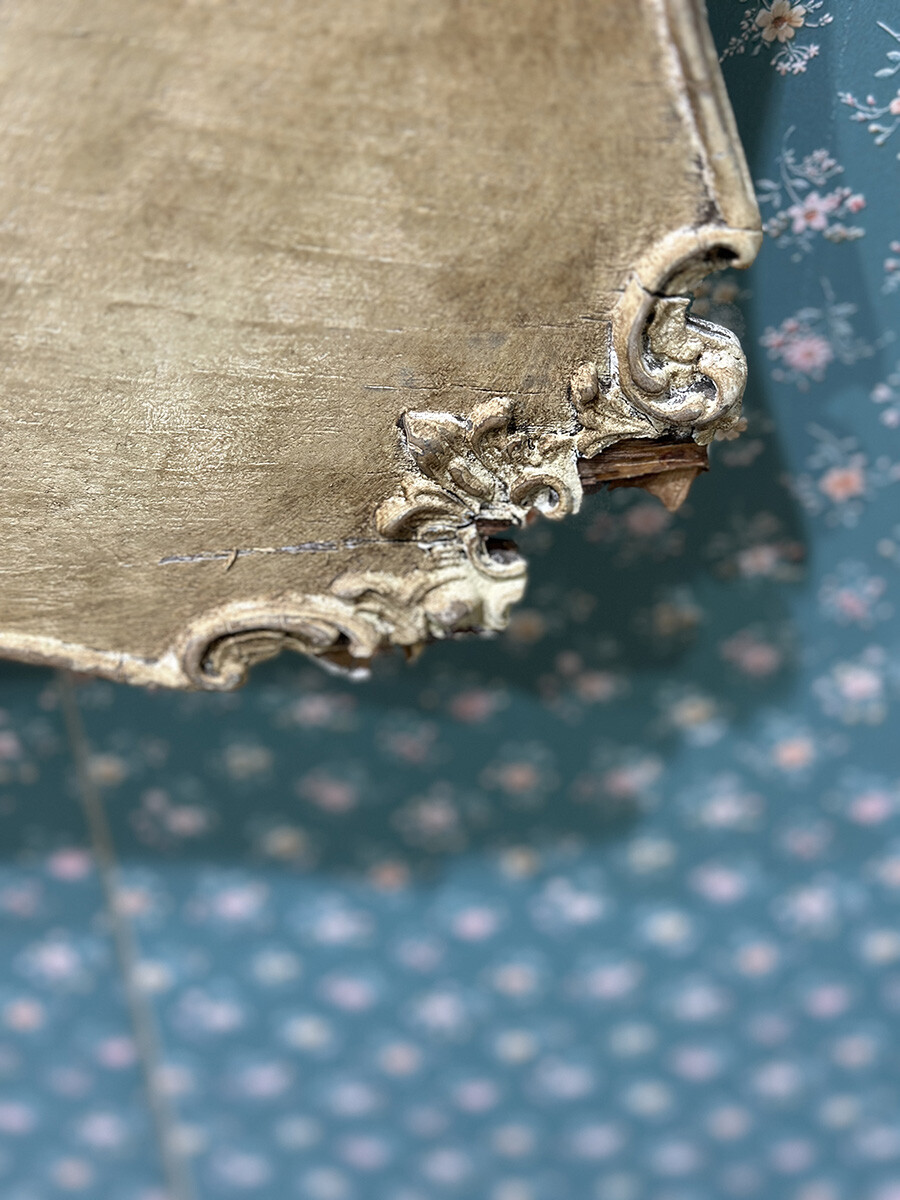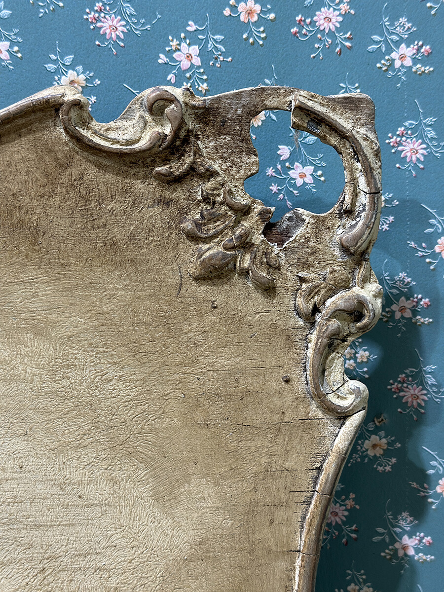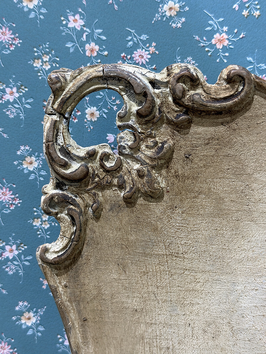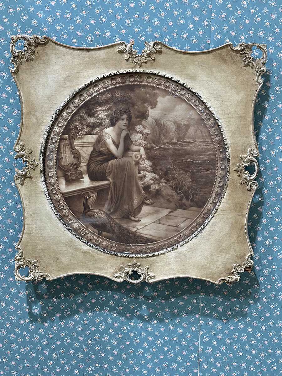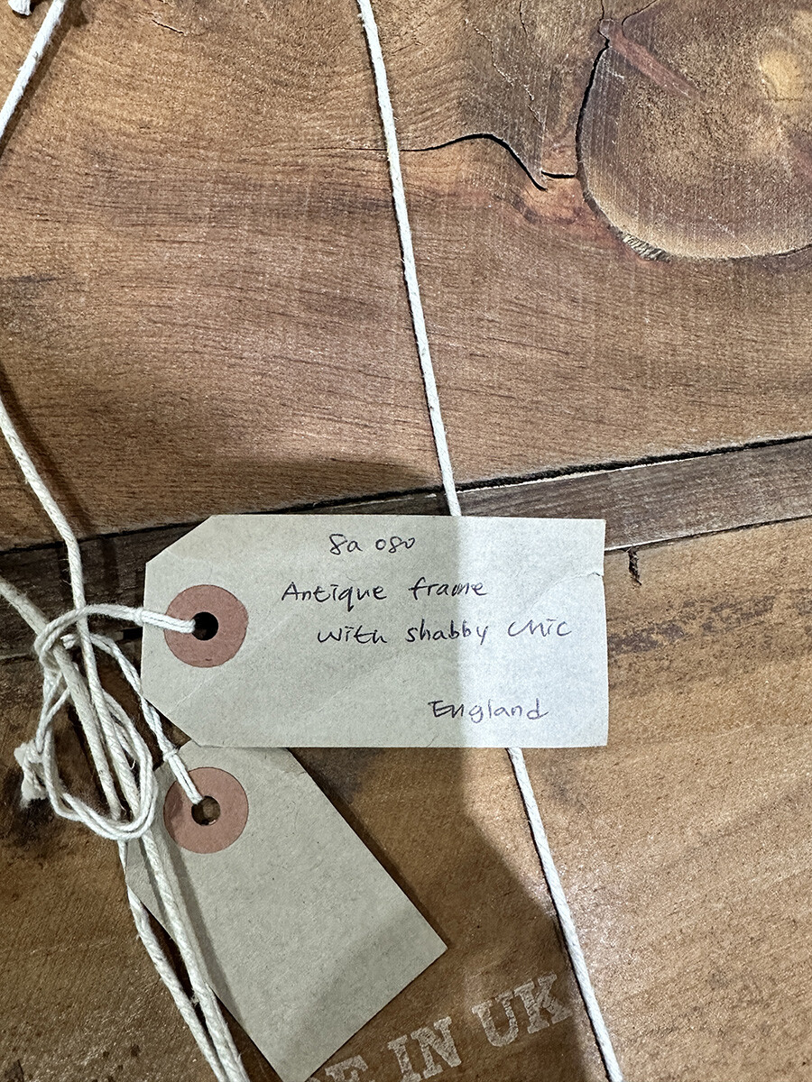 쉐비 시크 앤틱 프레임입니다. 정사각 프레임 안에 다시 정원형 프레임이 있는 프레임 속의 프레임 구조를 갖고 있는 이 앤틱 프레임은 플라스터(석고)와 유리로 제작되어 있습니다. 플라스터로 만들어진 앤틱 / 빈티지 프레임은 소재의 특성 상, 세월이 흐르면서 크랙이나 칩 등이 발생할 수밖에 없는데, 오히려 이러한 흔적들은 세월감의 요소로 받아들여지고 있습니다. 본 상품 내부의 그림은 프린트로 보이며, 전체적으로 뮤트(mute)된 컬러감을 갖고 있어 고요하고 차분한 느낌을 받습니다. 표구 변경하여 프레임만 사용하셔도 무방합니다.