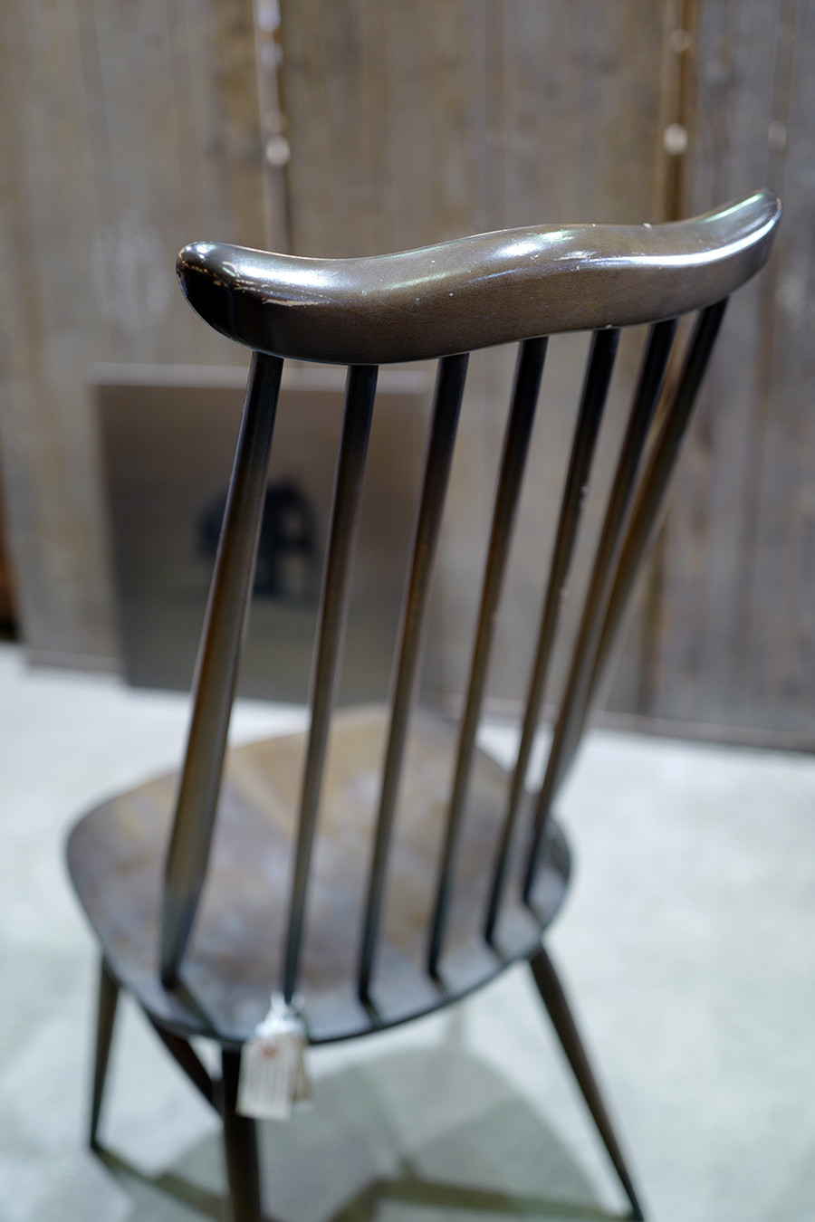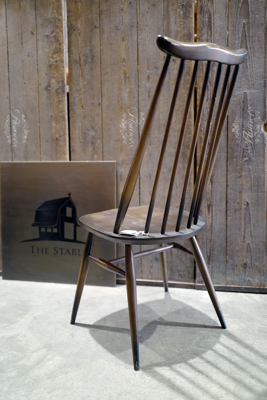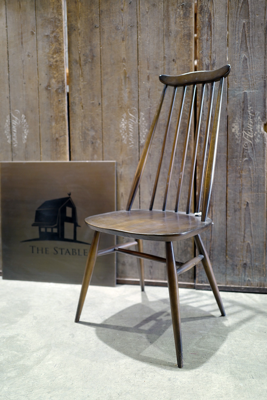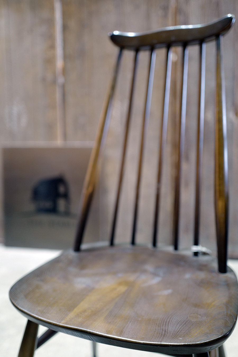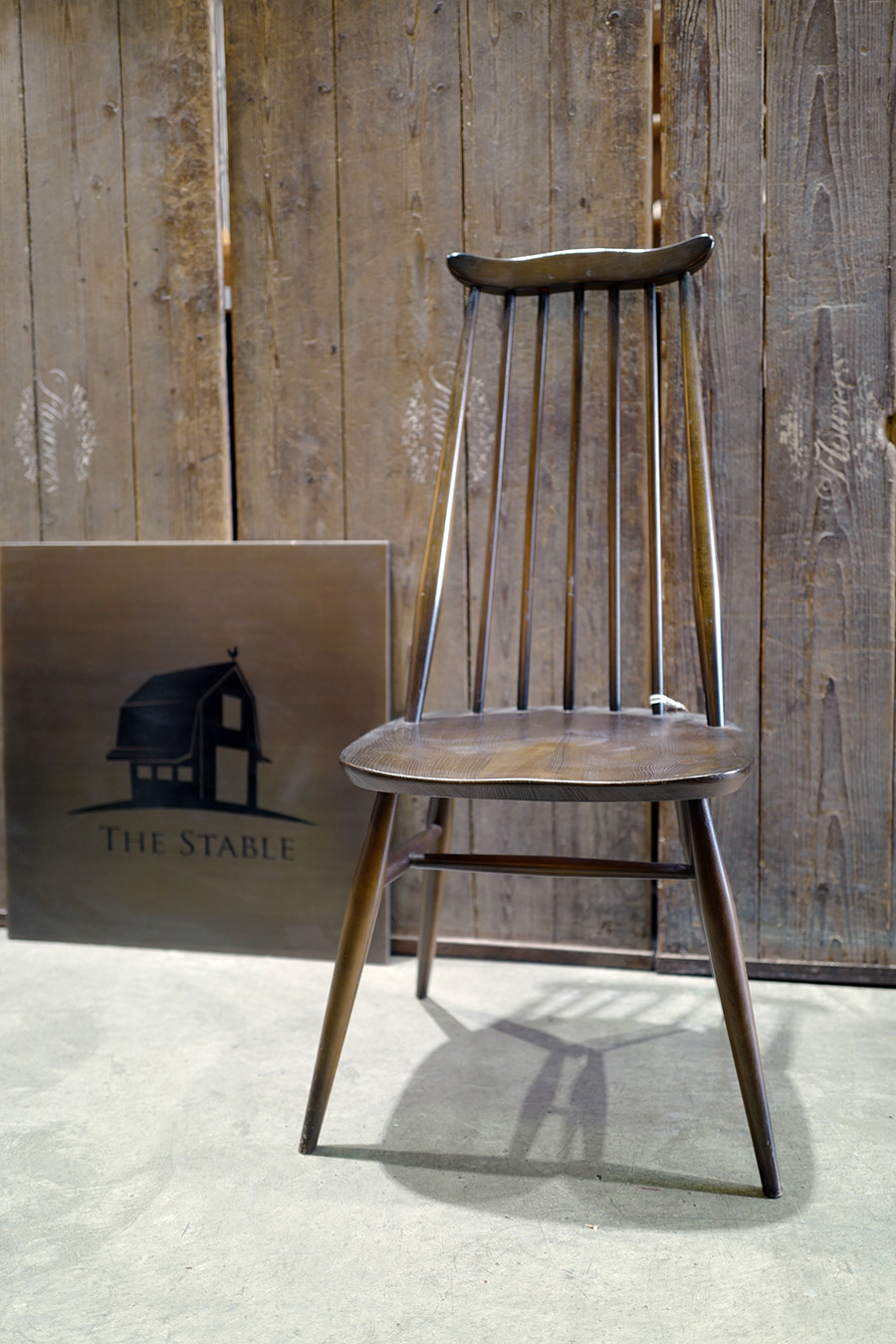 영국 가구 업계의 아이콘, 얼콜(ercol). 창업자의 오리지널 디자인을 하나의 제품군으로 모아 놓은 윈저 레인지(Windsor range)에 속하는 다이닝 체어 중 하나입니다. 얼콜 팬들에게 큰 인기를 누리고 있음에도 불구하고 1986년에 단종된 이후, 더 이상 복각되지 않고 있습니다. 때문에 현재까지도 제작되고 있는 퀘이커 체어나 기타 다른 체어에 비해 가격대가 높게 형성되어 있으며, 현재도 지속적인 가격 상승을 보이고 있는 아이템입니다. 하이백 윈저 체어 고유의 소박함과 단아함을 느낄 수 있으며, 스테이가드의 물결 모양이 넘치지 않는 장식미를 더하고 있습니다. 등받이 부분이 하이백으로 되어 있으며 전통적인 윈저 체어의 장점인 편안함이 얼콜에 의해 극대화 되어 있습니다. 시트 부분의 소재는 엘름(elm), 나머지 파츠들은 애쉬(ash), 비치(beech)입니다.