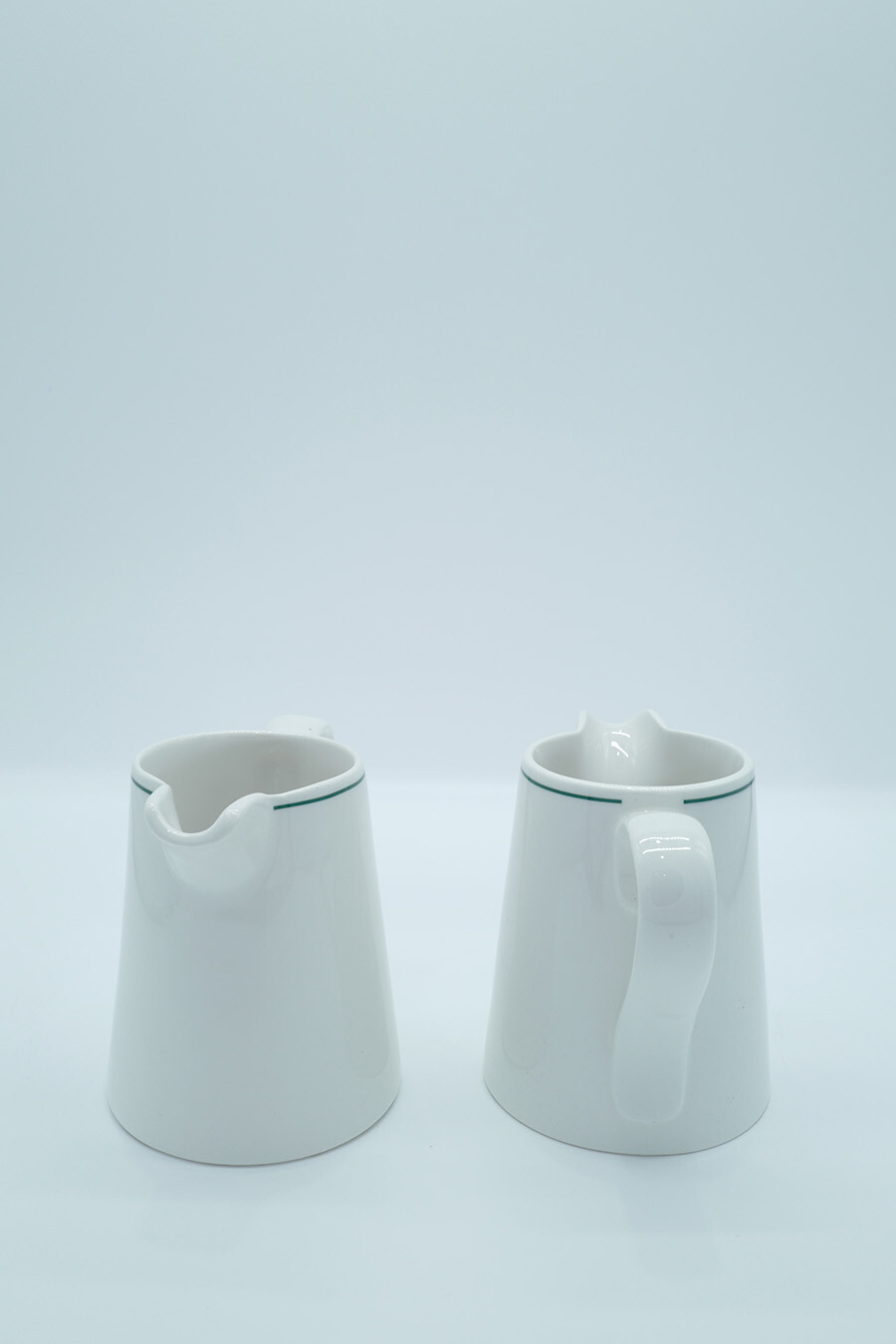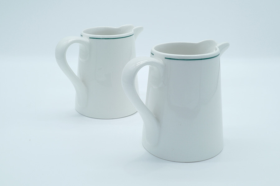 더드슨(Dudson)의 빈티지 밀크 저그입니다. 더드슨(Dudson)은 1800년에 창업한 가족 기업으로 영국의 전통적인 포터리 메이커들의 성지, 스토크-온-트렌트(Stoke-on-Trent) 지역에 그 뿌리를 두고 있습니다. 영국의 식기업체들 중에서도 아주 역사가 깊은 편이지요. 더드슨의 폭발적인 성장기회는 1800년대 후반에 찾아옵니다. 이때부터 철도와 선박 등을 이용한 여행 인구들이 늘어나기 시작했고, 열차나 선박 내의 식당이나 호텔 등에서 오랫동안 사용할 수 있는 식기류가 시장에 필요했는데 더드슨이 내구성이 강한 아이언 스톤 포터리를 집중적으로 생산하면서 더드슨은 아이언 스톤 계열 식기류의 대표적인 메이커로 자리잡게 됩니다. 본 상품인 빈티지 밀크 저그 역시 호텔 웨어로 생산된 것으로, 미사용 상품입니다.